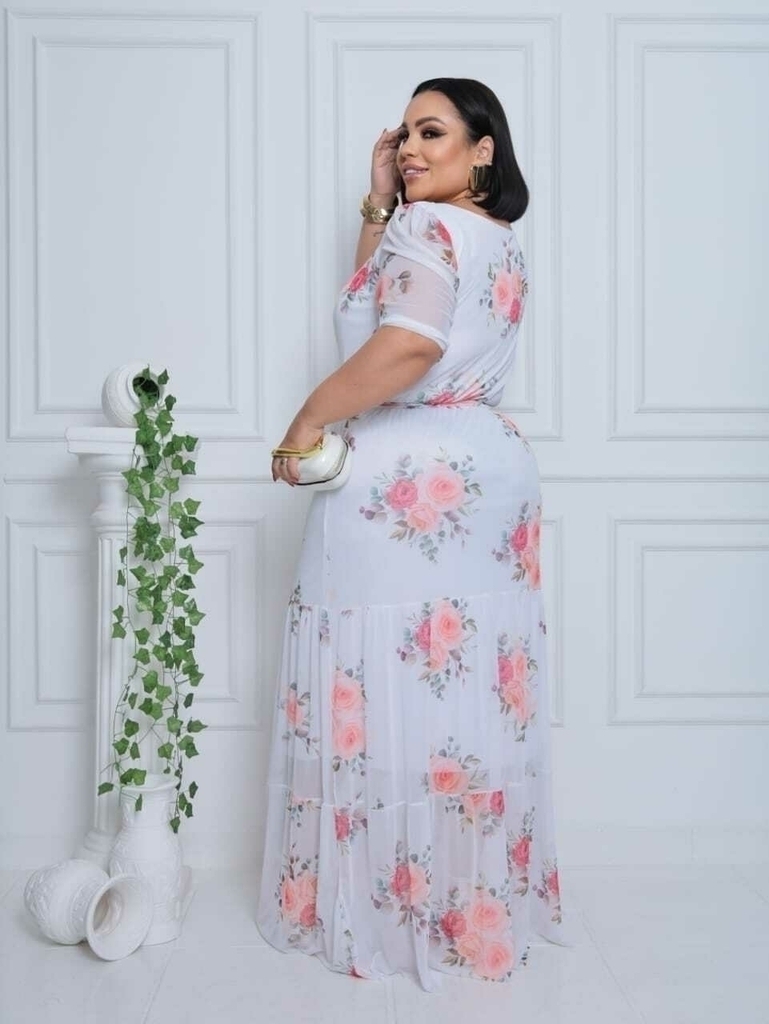 Com modelagem plus, ele veste do 50 ao 54 com caimento leve e estruturado. Confeccionado em tecido tule forrado, traz um toque suave à pele e segurança ao vestir. A gola quadrada realça o colo com sofisticação, enquanto as mangas curtas dão um ar fresco e delicado à peça.